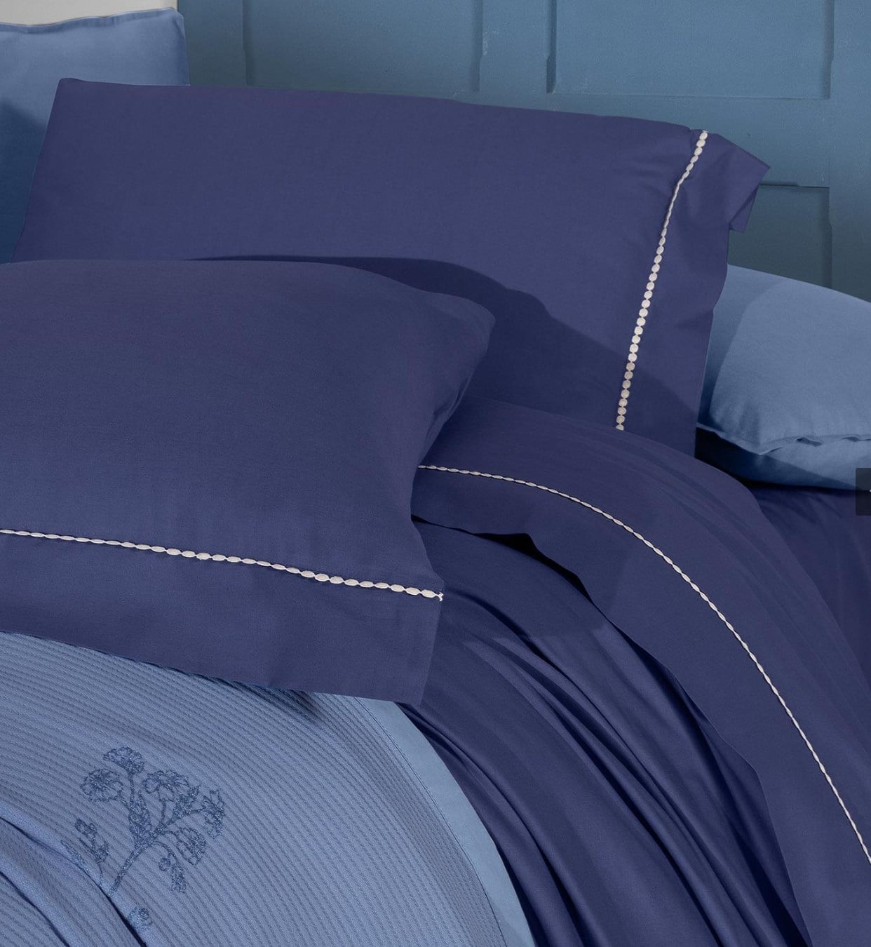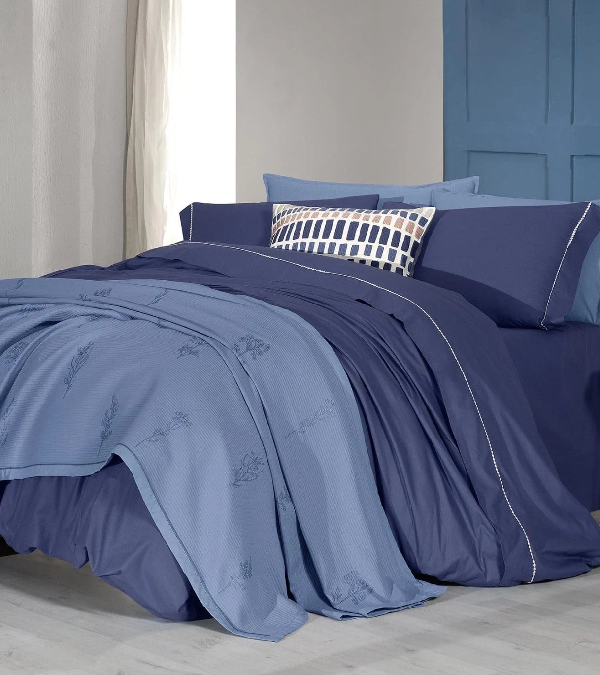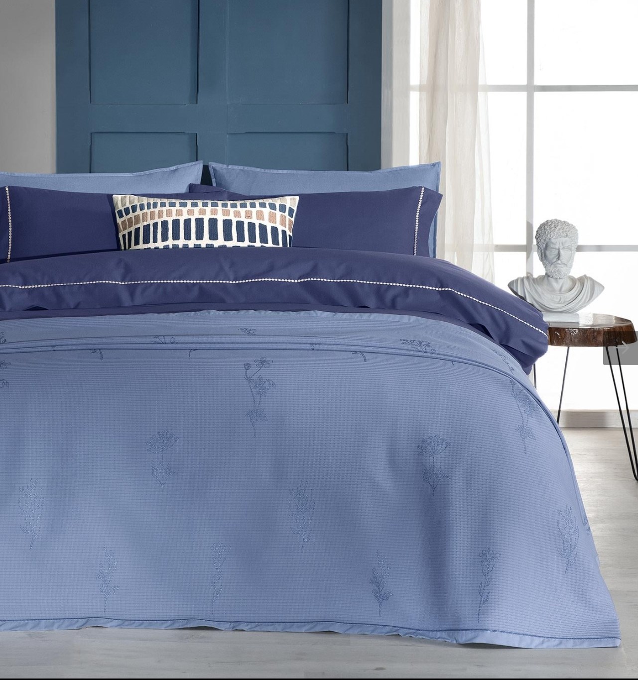 SAREV EVA ELDON ÇİFT KİŞİLİK PİKELİ NEVRESİM TAKIMI MAVİ